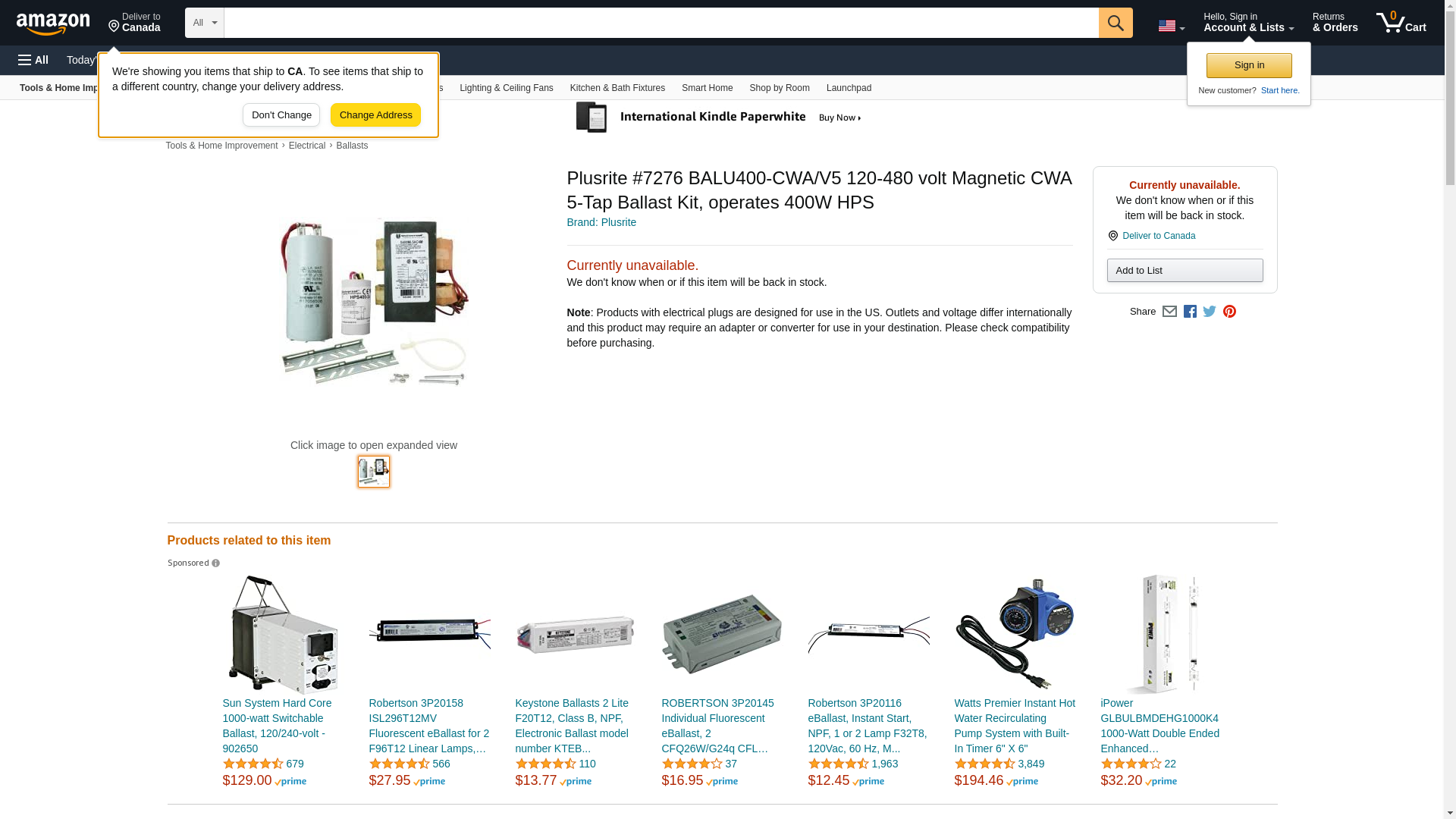 Plusrite #7276 BALU400-CWA/V5 120-480 volt Magnetic CWA 5-Tap Ballast Kit, operates 400W HPS