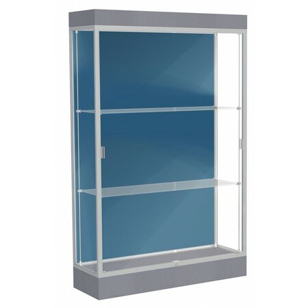 Edge Series Floor Display Case Base Color: Carbon Mesh, Frame Color: Satin, Case Backing: Blue Steel