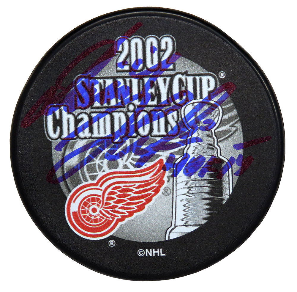 Schwartz Sports Memorabilia HASPUC409 Dominik Hasek Signed Detroit Red Wings 2002 Stanley Cup Champions Logo Hockey Puck