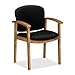- Contemporary wood guest chair features a four-leg base and single-rail arms