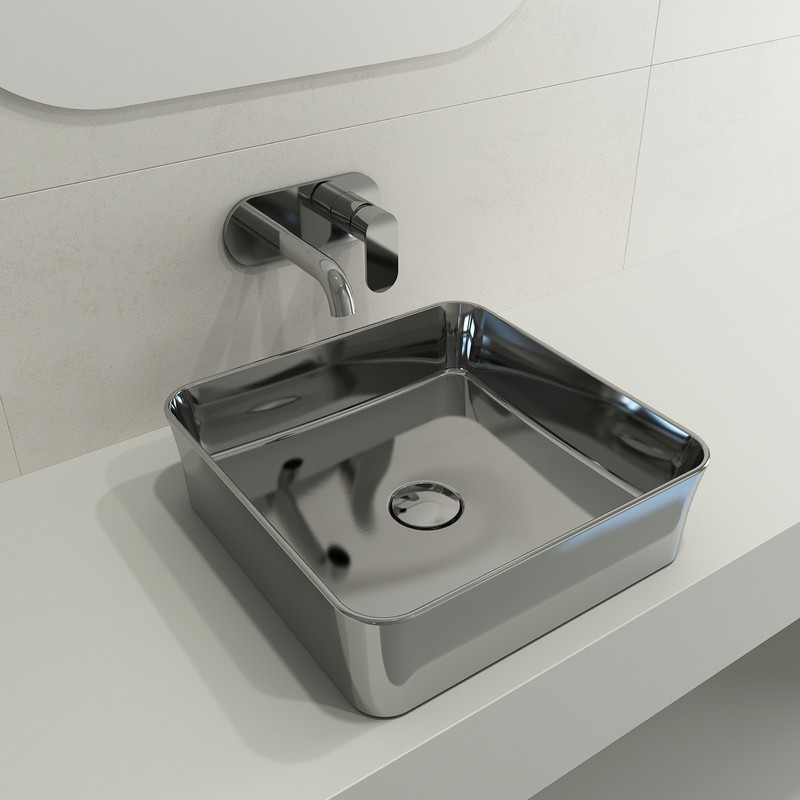 BOCCHI 1477-401-0125 SOTTILE 15.25 INCH SQUARE VESSEL FIRECLAY WITH MATCHING DRAIN COVER, PLATINUM