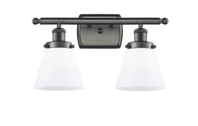 INNOVATIONS LIGHTING 916-2W-OB-G61 BALLSTON SMALL CONE 2 LIGHT 16 INCH MATTE WHITE GLASS VANITY LIGHT, OIL RUBBED...