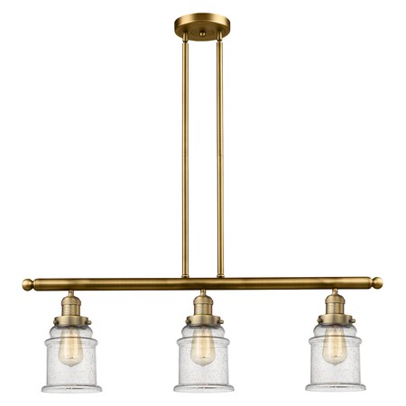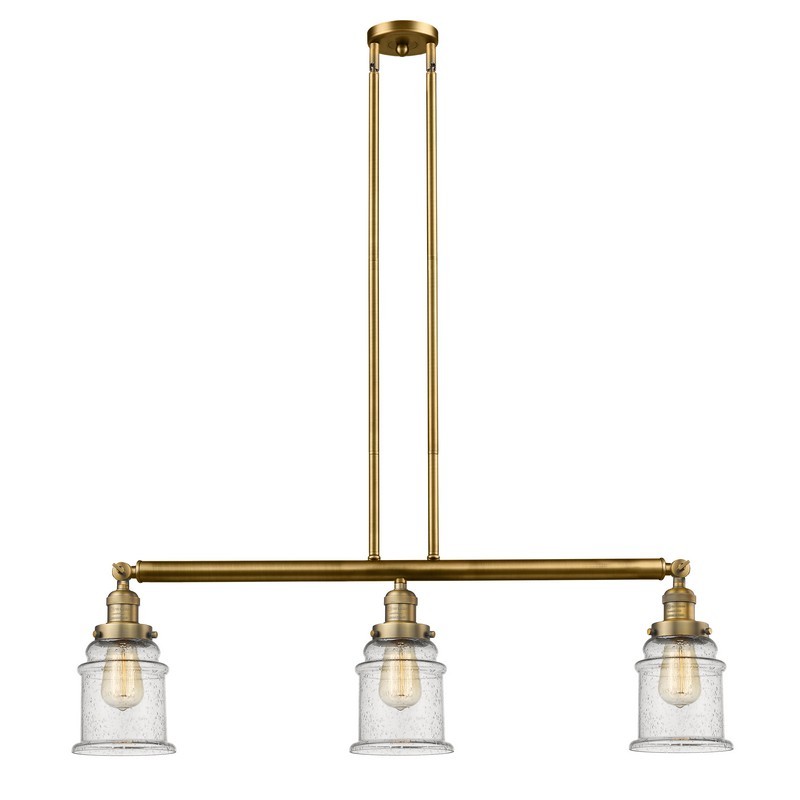 Innovations Lighting 213-BB-G184 Canton - Three Light Adjustable Stem Island, Brushed Brass Finish with Seedy Glass