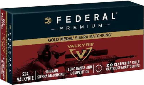 Federal Gold Medal Match .224 Valkyrie Ammunition 320 Rounds 90 Grain Sierra MatchKing Boat Tail Hollow Point 2700fps Nylon Bag Included [FC-604544644272CASE]