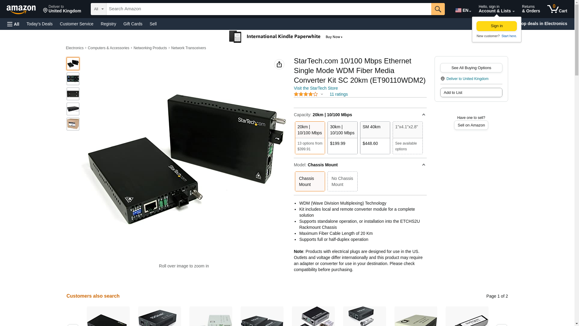 StarTech ET90110WDM2 Ethernet SM WDM Fiber Media Converter Kit SC 20km - Media converter - 10Base-T, 100Base-FX, 100Base-TX - RJ-45 / SC single mode - up to 12.4 miles - 1310 nm
