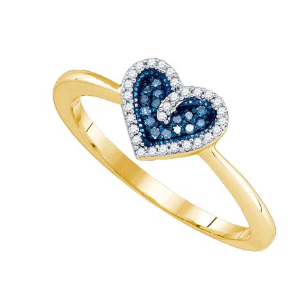 10kt Yellow Gold Womens Round Blue Colored Diamond Heart Love Ring 1/10 Cttw