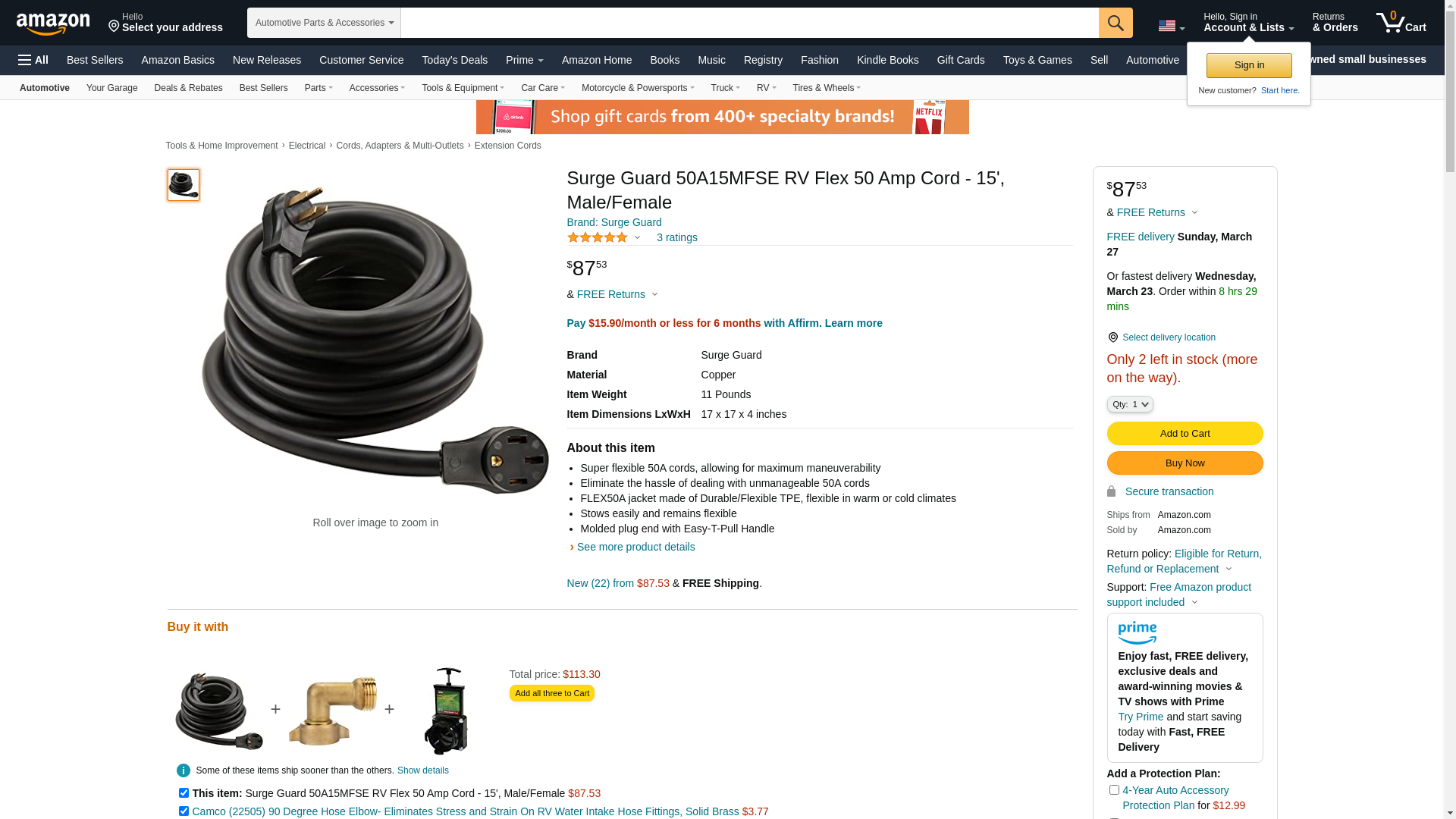 Surge Guard 50A15MFSE Super Flex 50 Amp 15' Male And Female Adapter Cord