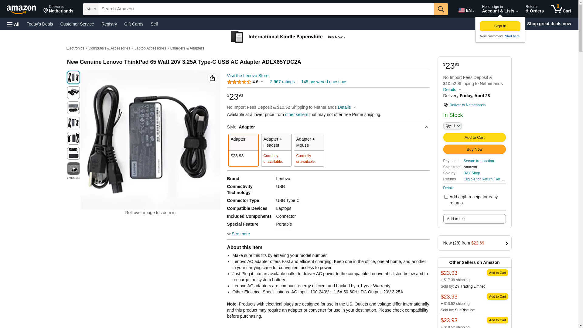 - Lenovo AC adapters are compact, energy efficient and backed by a 1 year Warranty.