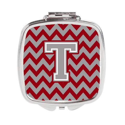 Carolines Treasures CJ1043-TSCM Letter T Chevron Crimson & Grey Compact Mirror