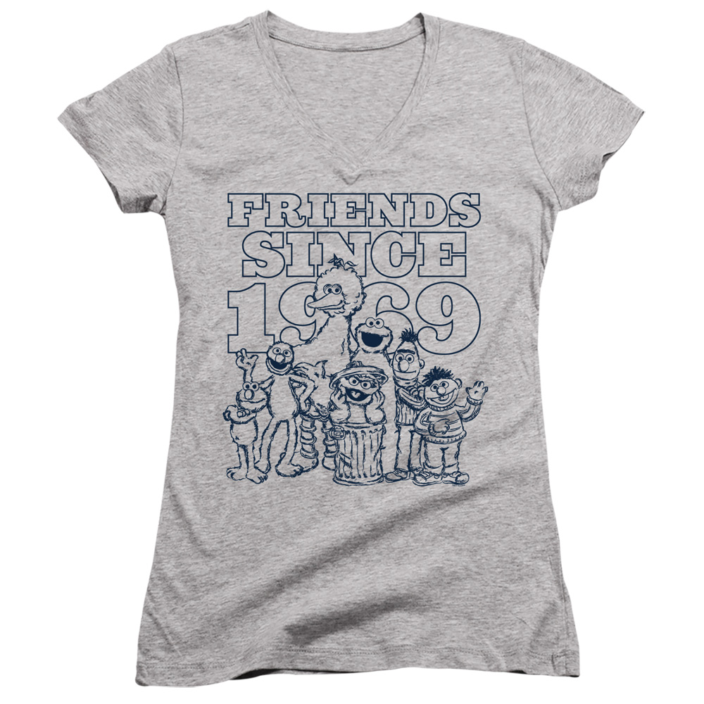 Trevco SST290-JV-2 Sesame Street & Friends Since-Junior V-Neck T-Shirt, Athletic Heather - Medium