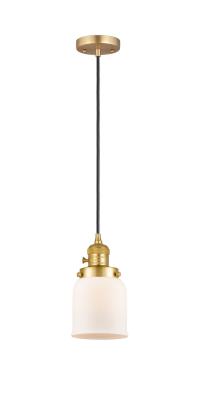 INNOVATIONS 201CSW-SG-G51 1-Light Mini Pendant Satin Gold. Collection: Franklin Restoration. Style: Industrial, Farmhouse, Restoration-Vintage, Traditional. Metal Finish: Satin Gold. Metal Finish (Canopy/Backplate): Satin Gold. Material: Steel, Cast Brass, Glass. Dimension(in): 10(H) x 5(W) x 5(Dia). Min/Max Height (Fixture Height with Cord or Included Stems & Canopy)(in): 13/131. Wire/Cord: 10 Feet Of Black Textured Cord. Bulb: (1)60W Medium Base,Dimmable(Not Included). Maximum Wattage Per Socket: 100. Voltage: 120. Color Temperature (Kelvin): 2200. CRI: 99.9. Lumens: 220. Glass Shade Description: Matte White Cased Small Bell. Glass or Metal Shade Color: Matte White. Shade Material: Glass. Glass Type: Frosted. Shade Shape: Bell. Shade Dimension(in): 5(W) x 5.75(H). Fitter Measurement (Glass Or Metal Shade Fitter Size): 3.25 inch Fitter. Canopy Dimension(in): 4.5(Dia) x 0.75(H). Sloped Ceiling Compatible: Yes. California Proposition 65 Warning Required: Yes. UL & ETL Certification: Damp Location.