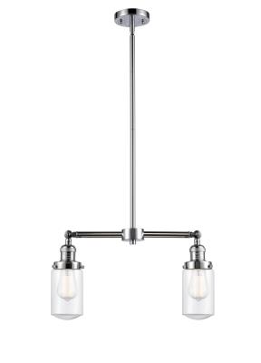 INNOVATIONS LIGHTING 209-PC-G312 Dover 2 Light Chandelier part of the Franklin Restoration Collection. The Dover 2 Light Chandelier is part of the Franklin Restoration Collection. Includes 1-6 and 2-12 inch Stems. Additional Stems sold separately. Solid Brass 180 Degree Adjustable Swivels with internal teeth that lock in at 5 degree intervals With Engraved Cast Cup. Solid Brass 90 Degree Hang Straight Swivel for Sloped Ceilings Included. Collection: Franklin Restoration. Material: Steel, Cast Brass, Glass. Metal Finish(Body): Polished Chrome. Metal Finish(Canopy/Backplate): Polished Chrome. Dimension(in): 21(W) x 10.75(H) x 4.5(Ext). Minimum Height (Fixture Height with Shade, Cord or Included Stems & Canopy)(in): 21.625. Max Height (Fixture Height with Cord or Included Stems & Canopy)(in): 44.625. Bulb: (2)100 Medium Base Vintage Bulb recommended(Not Included). Voltage: 120. Glass: Clear Dover/Transparent. Shade Shape: Schoolhouse. Shade Material: Glass. Shade Size(in): 4.5 X 6.5. Shade Fitter Measurement: 3.25 inch Fitter. Canopy Dimension(in): 4.5 x 0.75. Includes 10 Feet of Wire. Solid Brass 180 Degree Adjustable Swivels with internal teeth that lock in at 5 degree intervals With Engraved Cast Cup. Solid Brass 90 Degree Hang Straight Swivel for Sloped Ceilings Included. Can be hung as a Pendant or Semi Flush. UL/CUL Damp Rated. Warranty: 2 Year Finish, Lifetime Electrical.