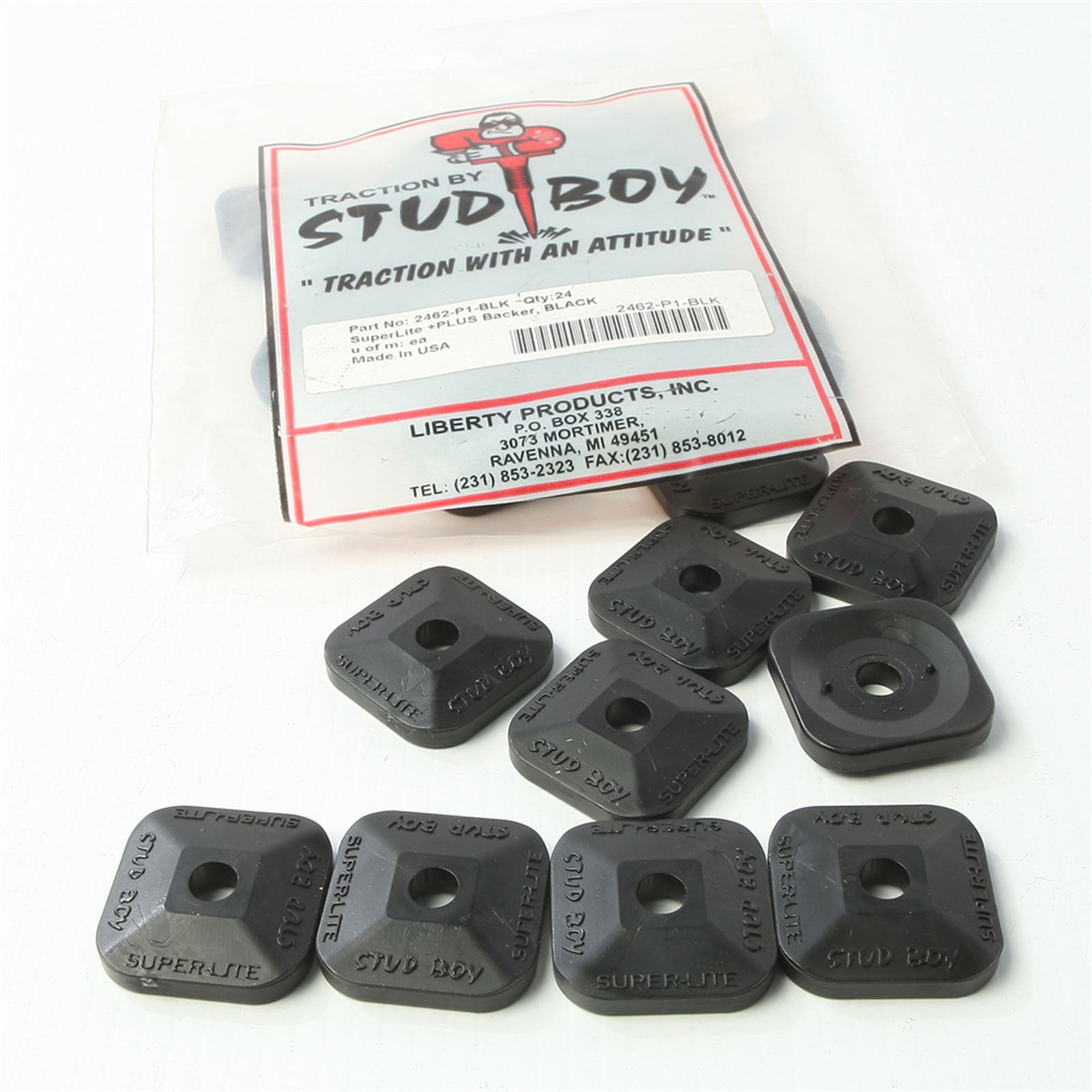 SUPER-LITE backer is designed for the rider who is looking for lightweight stud support.<br> These backers are made from engineered polymers, they are lighter than aluminum, while still maintaining excellent strength.<br> SUPER-LITE backers are available in three styles and seven colors.<br> SUPER-LITE + PLUS single backer is a larger 1.450in. square backer to be used on all tracks (including single ply) with any Stud Boy 5/16in. carbide studs or +Plus type studs.