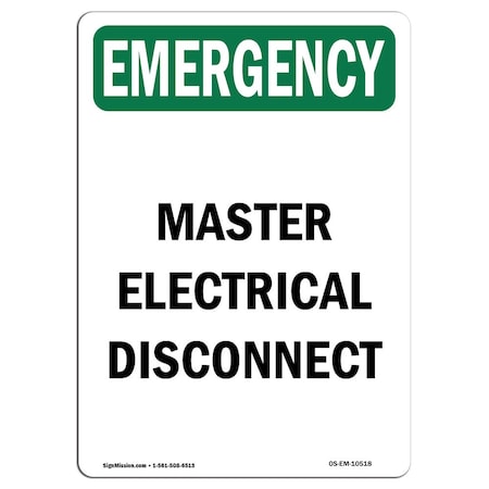 OSHA EMERGENCY Sign, Master Electrical Disconnect, 7in X 5in Decal