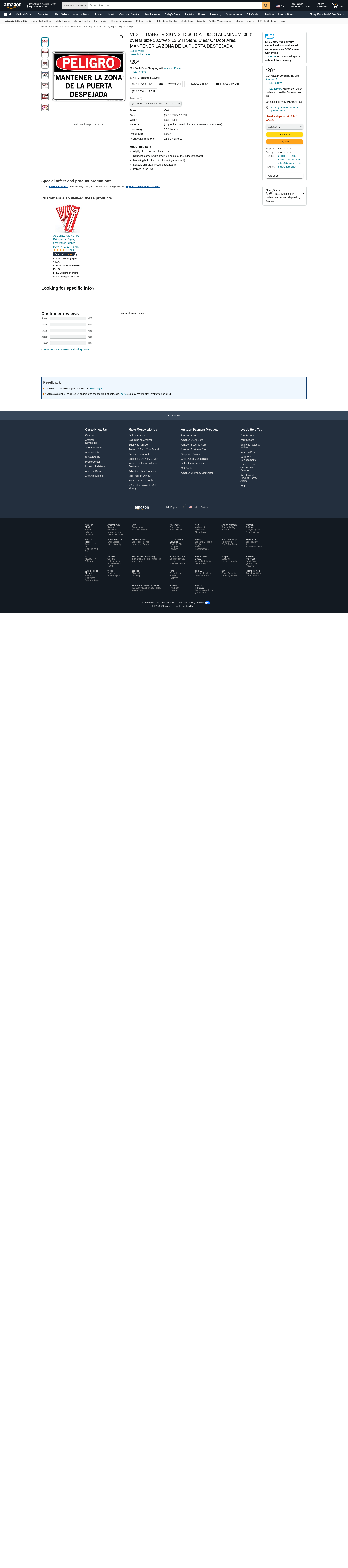 VESTIL DANGER SIGN SI-D-30-D-AL-063-S ALUMINUM .063" overall size 18.5"W x 12.5"H Stand Clear Of Door Area MANTENER LA ZONA DE LA PUERTA DESPEJADA