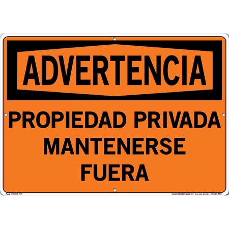 Vestil SI-W-34-E-AC-130-S PRIVATE PROPERTY KEEP OUT/PROPIEDAD PRIVADA MANTENERSE FUERA Warning Sign, Aluminum Composite, 0.130" Overall Size, 20.5" W x 14.5" H