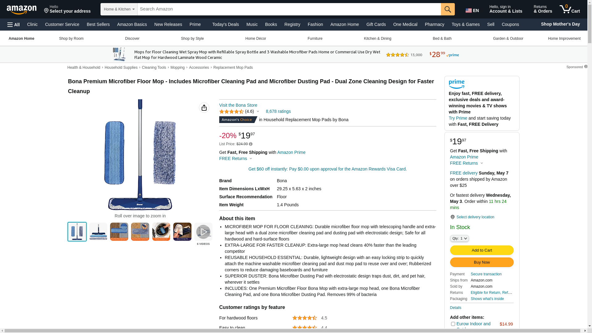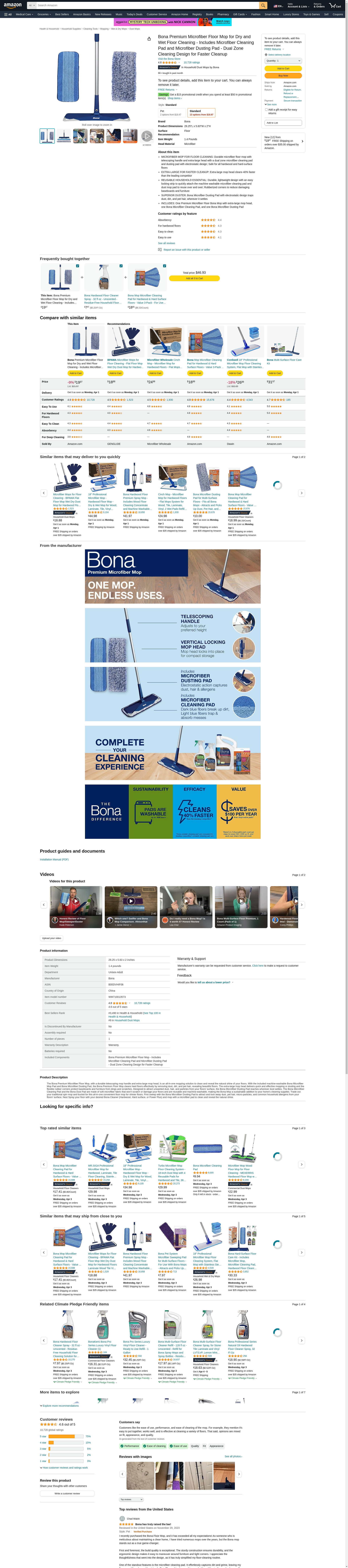 The Premium Bona Microfiber Floor Mop, Picks Up More Moisture and Dirt Than Traditional Mopping, Leaving Hardwood, Stone, Tile and Laminate Floors Clean With No Dulling Scratches, Includes Washable and Reusable Microfiber Cleaning Pad and Microfiber Dusting Pad.