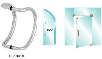 For Use With: 3/8" and 1/2" Glass 1" Diameter Stainless Steel or Brass Tubing This CRL Glass Mounted Curved Pull Handle is available in several finishes. Color: Satin Anodized Minimum Order: 1 Each Additional Product Information: SPECIFICATIONS Includes: One Set CC10X10 Pull Handles (back-to-back mounting) Two Each Through Bolts for Glass Mounting Four Each 1-1/4 Inch (32 millimeter) Diameter Matching Metal Finish Washers and Gaskets For Use With: 3/8 Inch (10 millimeter) Glass 1/2 Inch (12 millimeter) Glass Construction: One Inch (25 millimeter) Diameter Stainless Steel or Brass Tubing Glass Fabrication Required: Two 5/8 Inch (16 millimeter) Diameter Holes 10 Inches (252 millimeter) Center-to-Center For the thicker doors, please, use TB4CH bolt, which permits mounting of pulls to 1-3/4" (44.5 mm) thick, and in majority cases even up to 2" thick, aluminum, wood or hollow metal doors.