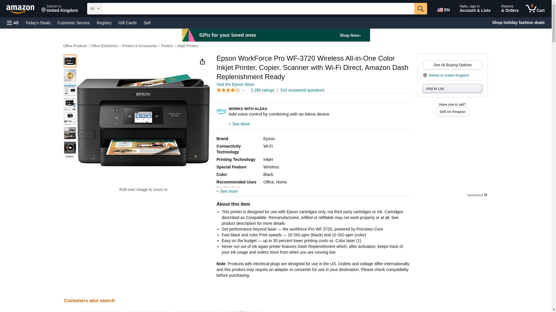 Epson WorkForce Pro WF-3720 Wireless All-in-One Color Inkjet Printer, Copier, Scanner with Wi-Fi Direct, Amazon Dash Replenishment Ready