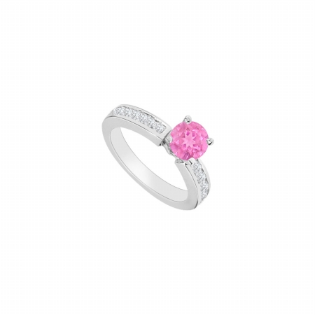 Fine Jewelry Vault UBJS297AW14DPS 14K White Gold Pink Sapphire & Diamond Engagement Ring - 0.80 CT TGW , 10 Stones