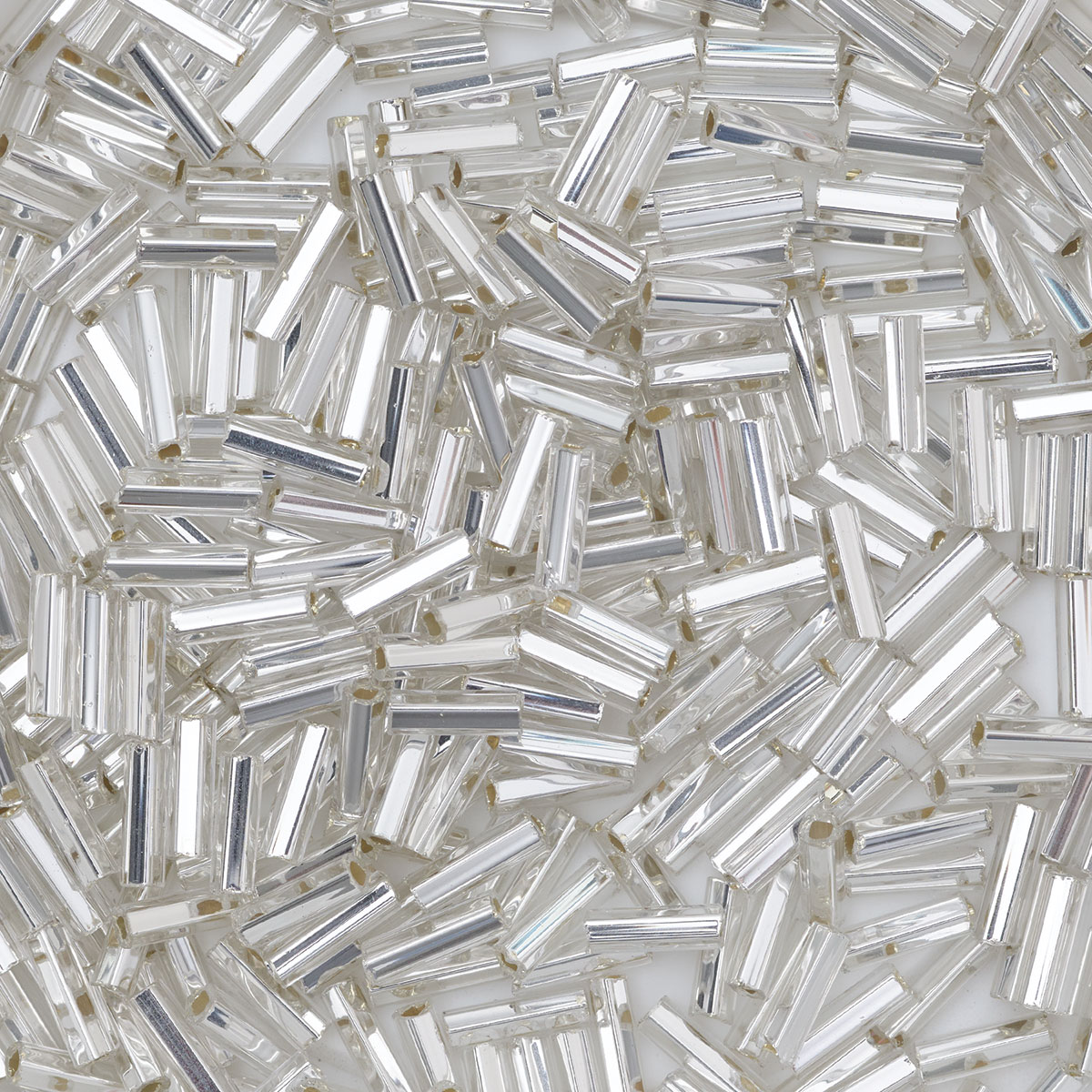 - John Bead Czech Glass Seed Beads - Bugle Style, Crystal, 22 g vial