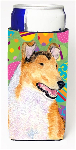 Caroline's Treasures SS4815MUK Collie Smooth Easter Eggtravaganza Ultra Hugger for slim cans Can Cooler Sleeve Hugger Machine Washable Drink Sleeve Hugger Collapsible Insulator Beverage Insulated Hold
