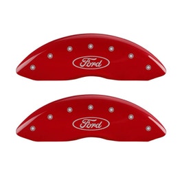 MGP Caliper Covers 10081SFRDRD Red Brake Covers Engraved with Silver Ford Oval (Set of 4)