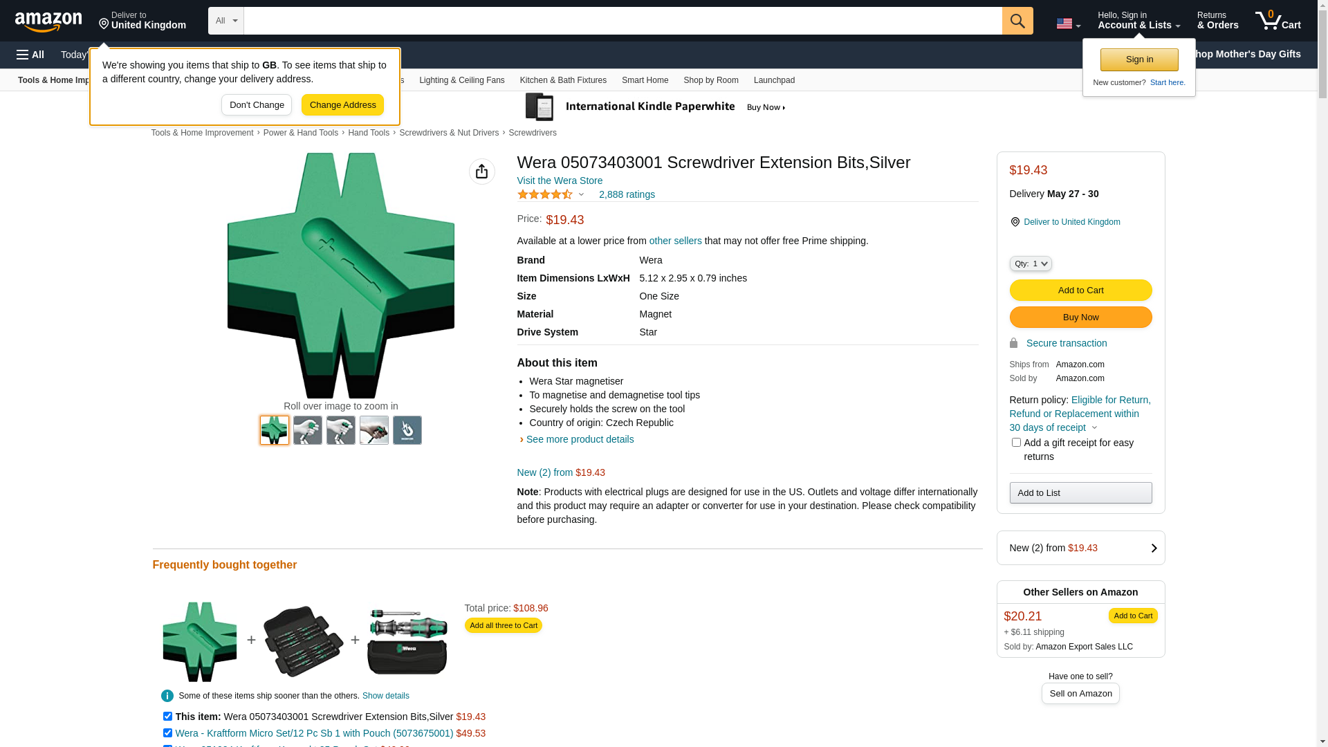 Wera 05073403001 Screwdriver Extension Bits,Silver