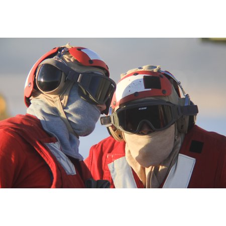 LAMINATED POSTER Sailors from crash and salvage communicate on the flight deck of the amphibious assault ship USS Bo Poster Print 24 x 36