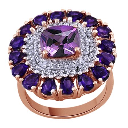 <ul> <li>Metal Type : 14k Rose Gold OVer Sterling Silver GUARANTEED, Authenticated with a 925 Stamp</li> <li>Gem Type :- Simulated Amethyst (Lab Created); Simulated Topaz (Lab Created)</li> <li>Stone Shape :- Cushion Shape & Round Shape</li> <li>Stone Setting type :- prongs</li> <li>Stone Clarity :- VVS1-VVS2 & VVS1-VVS2, Stone Color :- Violet; White</li> </ul>