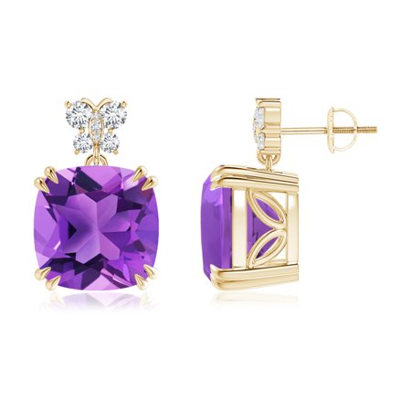 <ul> <li>Amethyst Dangle Earrings with Diamond Butterfly Motifs in 14K Yellow Gold (12mm Amethyst)</li> <li>Approximate Carat Total Weight 11.9 ct</li> <li>Screw Back Closure</li> <li>Amethyst are Heat treated for enhanced brilliance and lustre.</li> <li>Free Certificate of Authenticity and 30-Days Easy Returns.</li> <li>*Get a FREE Gemstone Pendant in Silver w/o Chain</li> </ul>