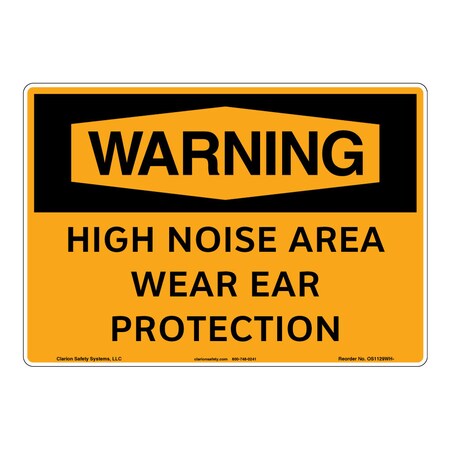 Warning/High Noise Area Wear Ear Protection Sign (OS1129WH-)|Weather Tuff Plastic 12" X 18" Corner Mounting Holes|OSHA Signs|Sign for Business, Retail, Workplace, Restaurant, Medical Facility