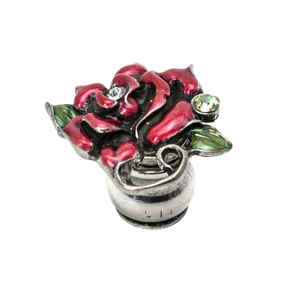 Oak Hollow In the Garden Collection - Rose & Leaf Knob W/ Swarovski Clear Crystals & Ruby Red Glaze in Chalice with Aquamarine by Carpe Diem Hardware - 2962-9-AQ | Knobs 4 Less