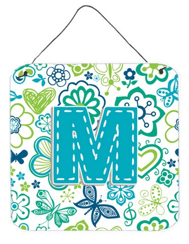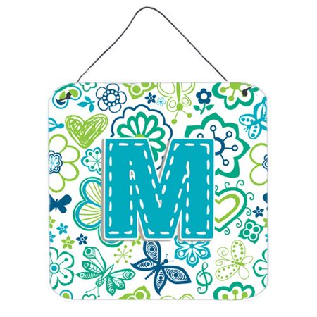 Caroline's Treasures Letter M Flowers and Butterflies Teal Blue Wall or Door Hanging Prints, 6 x 6