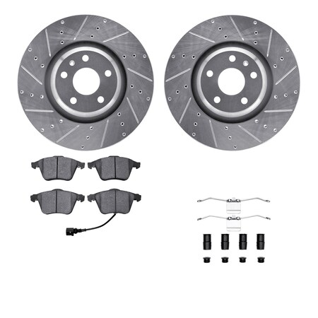 Dynamic Friction Company Front Brake Rotors-Drilled and Slotted-Silver with 5000 Advanced Brake Pads includes Hardware 7512-73095
