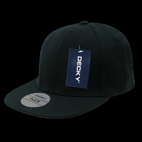 Decky 872-PL-BLK-06 Acrylic Flat Bill Flex Caps, Black - Small & Medium