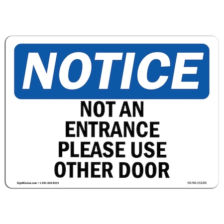 OSHA Notice Sign, Not An Entrance Please Use Other Door, 14in X 10in Aluminum