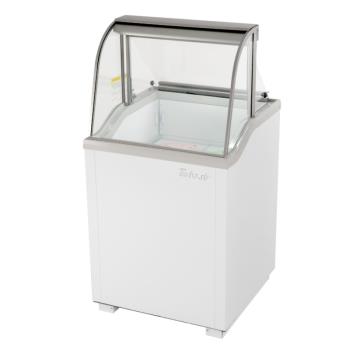 Ice Cream Dipping Cabinet, 26"W, (4) 3 gallon can capacity, (1) ABS night cover standard, (4) plastic can holders, LED lighting for interior canopy, Manual defrost, PE coated removable magnetic frost shields, White exterior, 5.0 Amps, 1/3 HP, 115v/60/1, NEMA 5-15P, cETLus, ETL-Sanitation, Attractive contemporary design with curved glass front and top Sturdy, clean stainless steel shelves Manual defrost system PE coated removable magnetic frost shields Provides fast and easy removal of accumulated frost on inside walls. Standard plastic night covers for case opening Maintains -10°F ~ 8°F for the best in frozen Ice cream preservation These models are designed to operate in air conditioned environments where temperature and humidity are below 75°F and 55% relative humidity Place units away from direct sunlight, rapid air movement and extreme temperature changes White (W) and Lime (G)