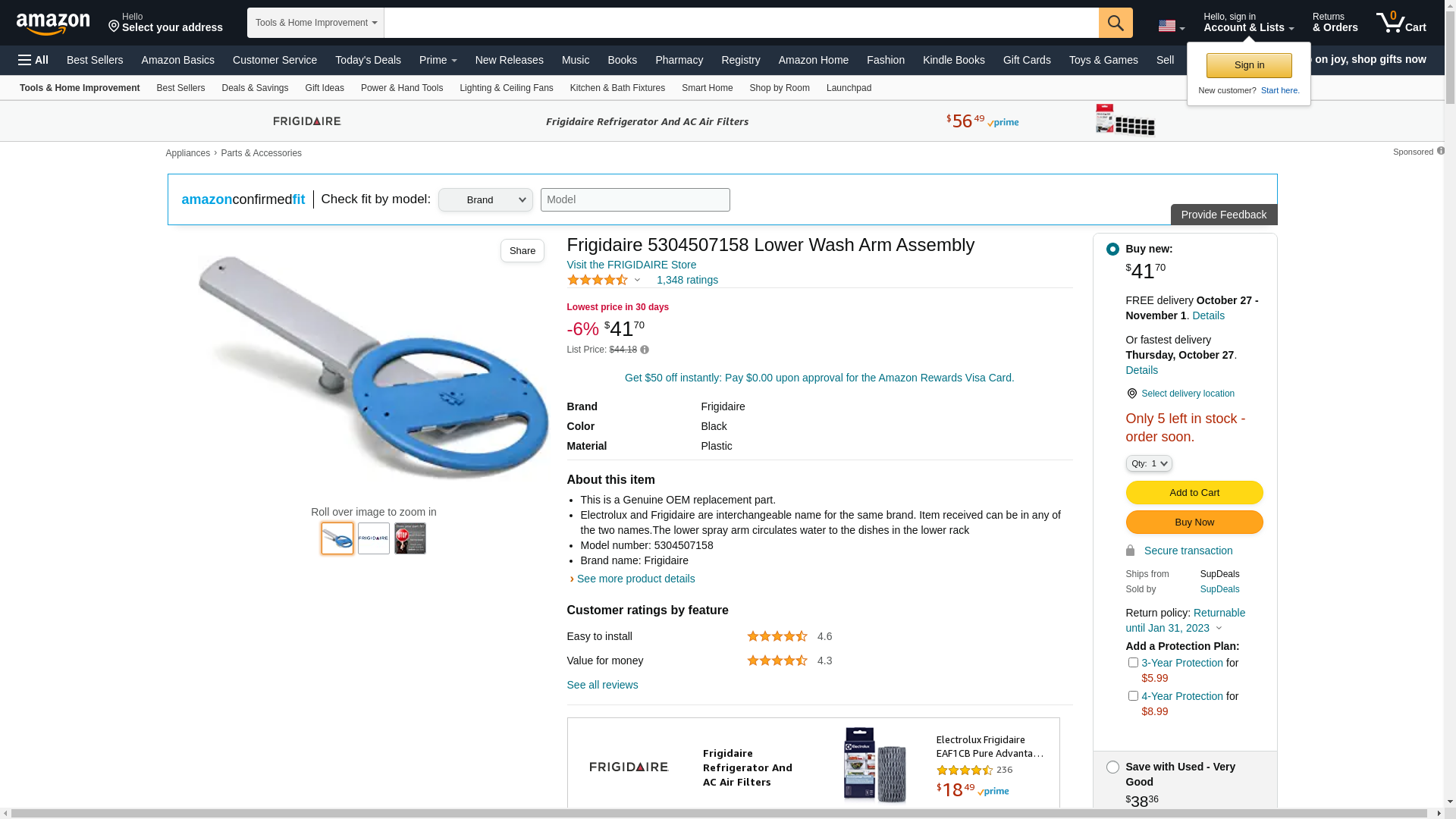 ![]() midwestapplianceparts.com | 5304507158-WCI-P | 1 | -2 | 1 | 1 @ $52.41 |