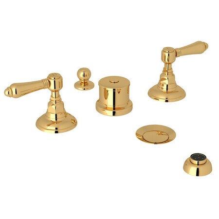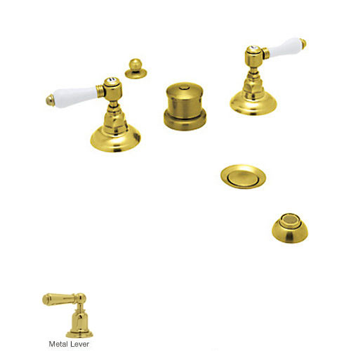 Rohl A1460LMIB, Rohl Bathroom Faucets, Five Hole Bidet Set With Hex Metal L - Inca Brass