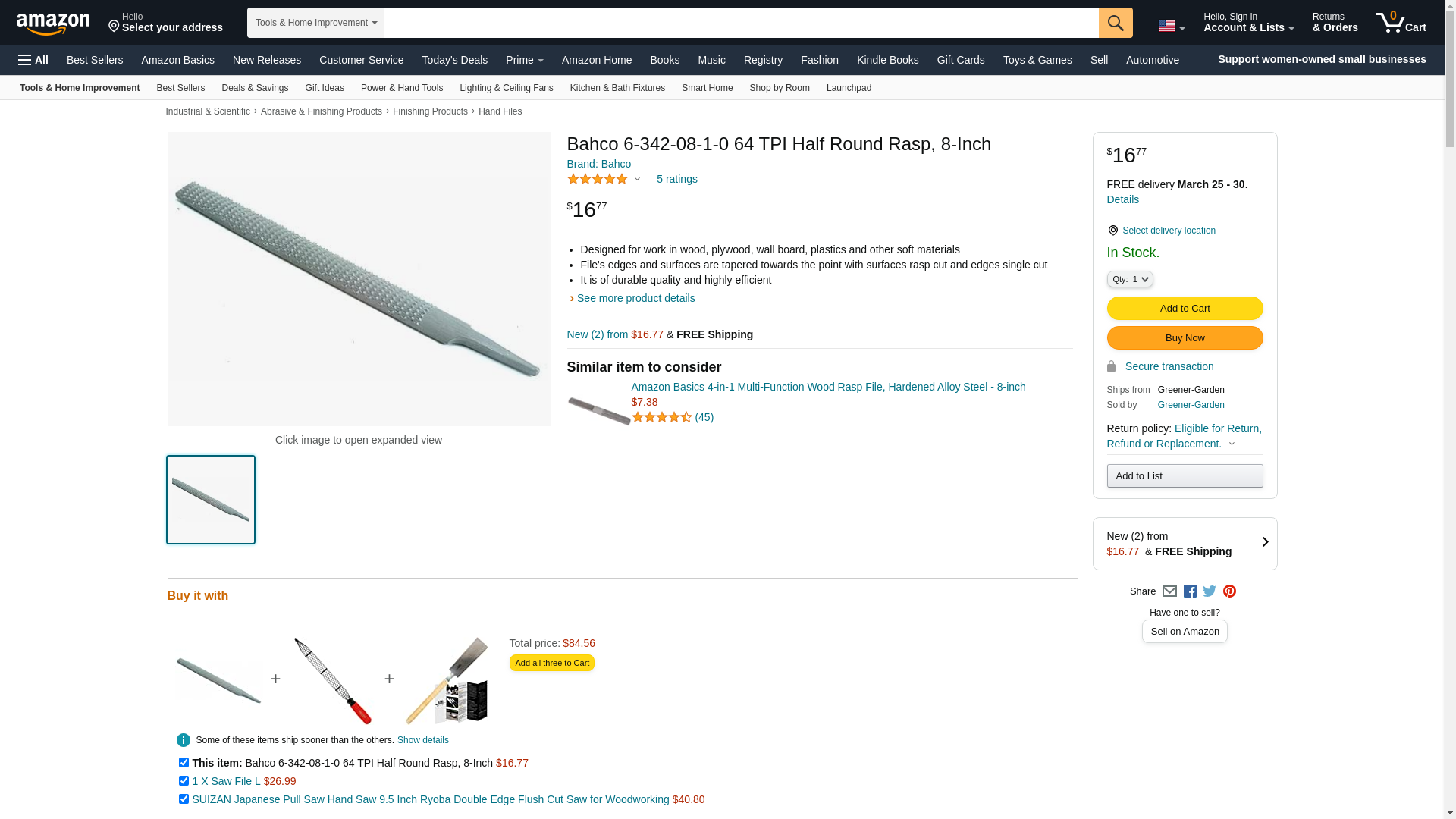 Bahco 6-342-08-1-0 64 TPI Half Round Rasp, 8-Inch