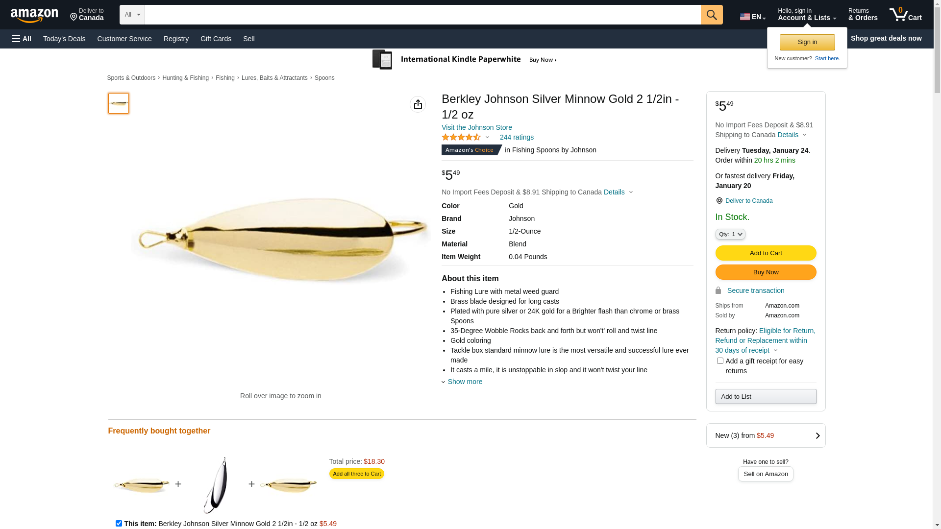 Berkley Johnson Silver Minnow Gold 2 1/2in - 1/2 oz