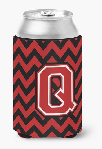 Carolines Treasures CJ1047-QCC Letter Q Chevron Black & Red Can or Bottle Hugger