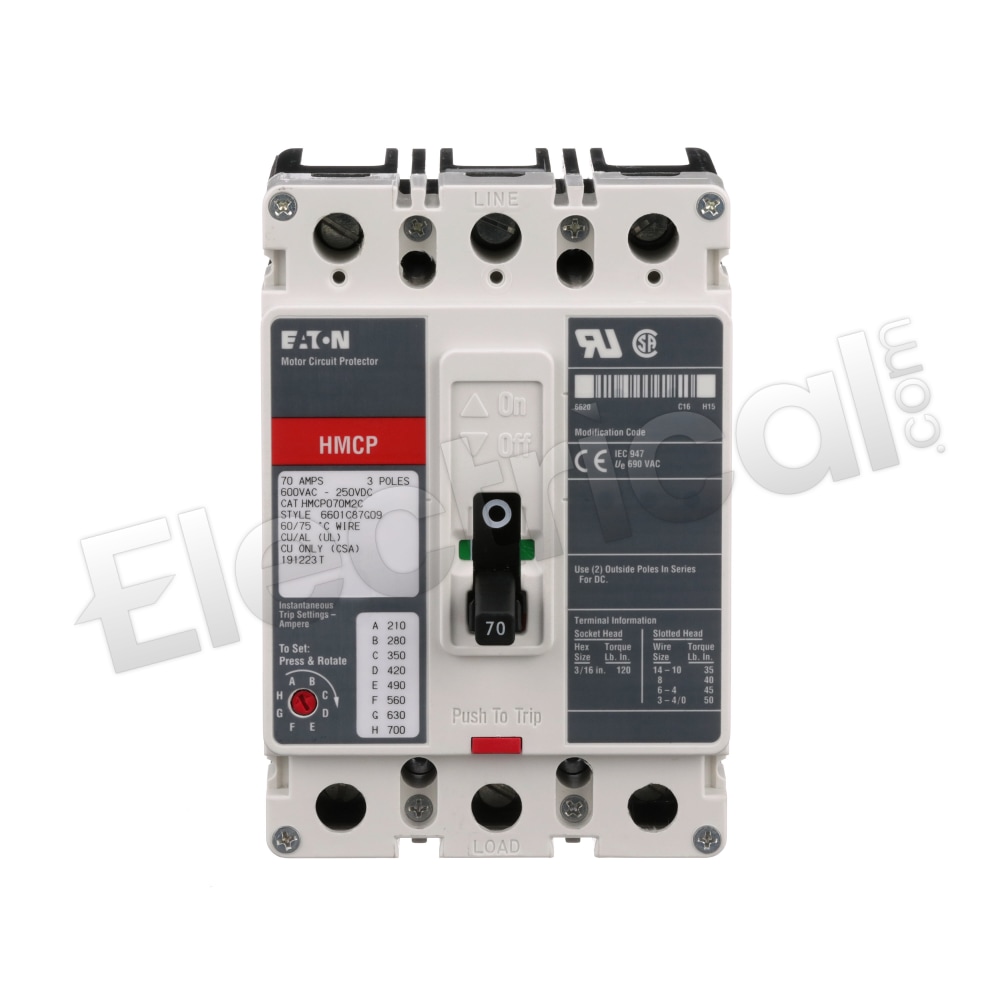 - Eaton HMCP070M2C Circuit Breaker,70A,3P,600VAC,HMCP