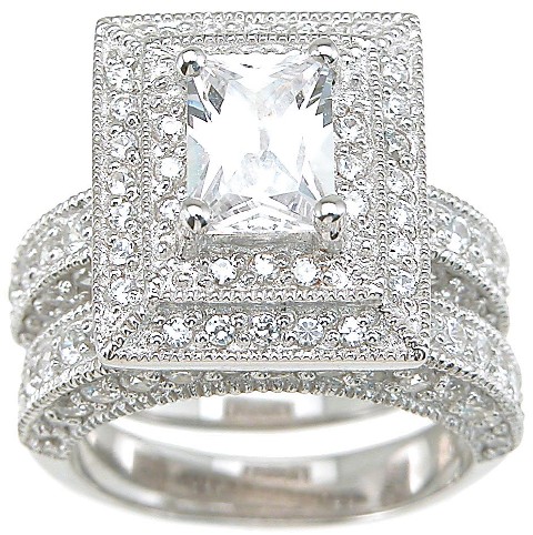 Plutus kkrs6300b 925 Sterling Silver Rhodium Finish CZ Antique Style Wedding Set Ring Size 7