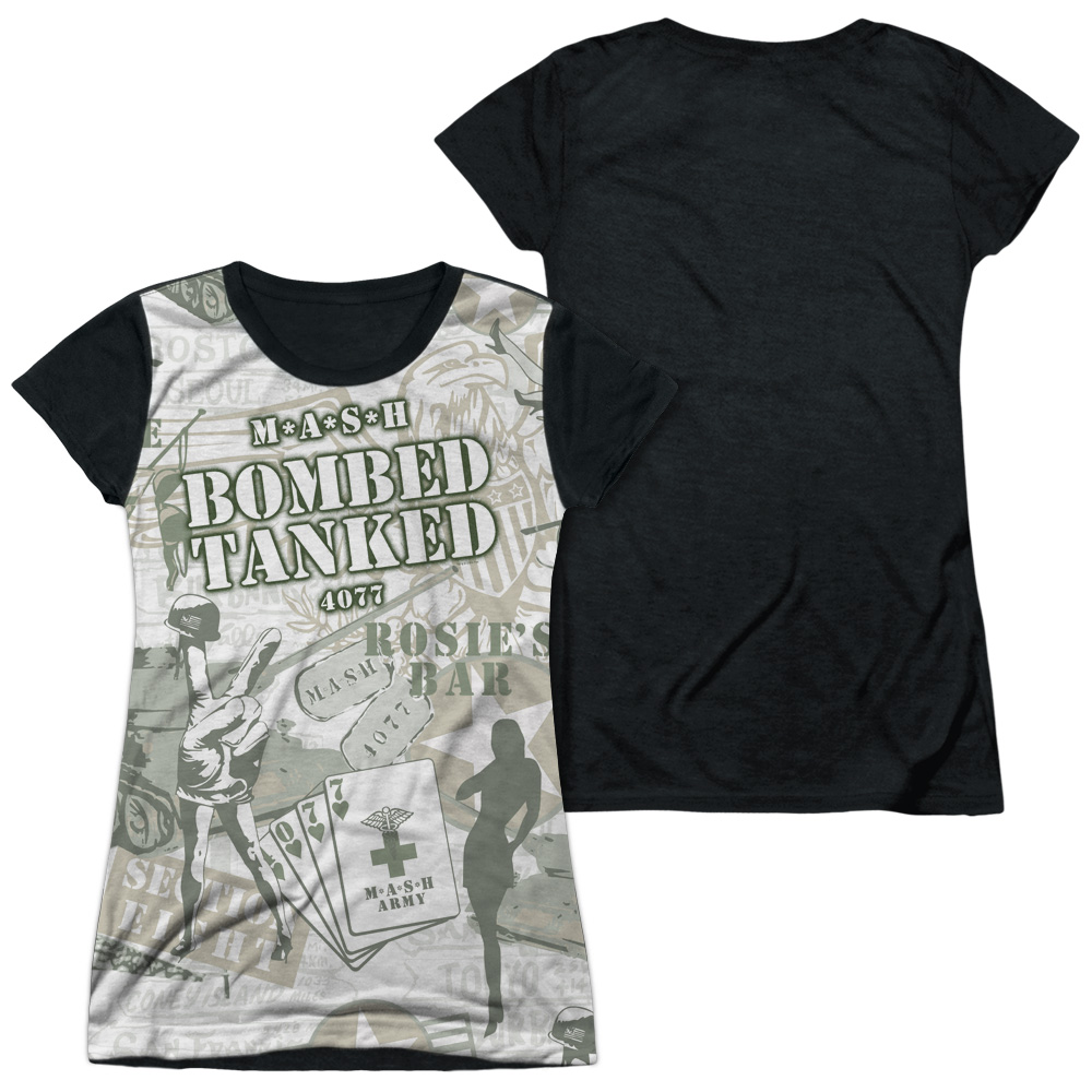 Trevco TCF226-JSBB-3 Mash & Bombed Tank Junior Cap Sleeve Polyster Black Back T-Shirt, White - Large
