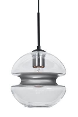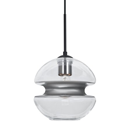 Besa Lighting-1JT-HULA8SL-BK-Collection: Hula, Material: Brass, Width/Diameter: 8", Height: 127.75", Lamp: 1-60w bulb(s), UL: Suitable for damp locations, - Desc: Canopy Included: Yes / Canopy Diameter: 5 / Sloped Ceiling Adaptable: Yes / Cord Length: 120 / Rod Length(s): 3", 6", 12", 18" / Dimable: Yes / Shade Included: Yes / Shade Dimensions: 7.75" x 8".-Hula 8 - 1 Light Cord Pendant Black Clear/Silver