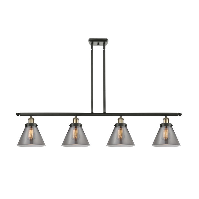 INNOVATIONS LIGHTING 916-4I-BAB-G43 BALLSTON LARGE CONE 4 LIGHT 48 INCH PLATED SMOKE GLASS ISLAND LIGHT, BLACK...