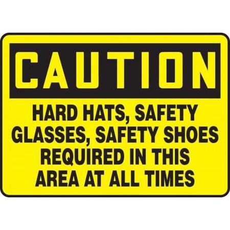 Accuform MPPE690VA Aluminum Safety Sign, Legend "Caution Hard Hats, Safety Glasses, Safety Shoes Required in This Area at All Times", 12" Length x 18" Width, Black on Yellow