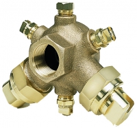 Type 5880 BoomJet nozzle is used for spraying areas not easily accessed with a boom sprayer. It combines two off-center tips and three VeeJet nozzles to produce an overall wide swath flat spray. The nozzle assembly provides good distribution considering the wide pattern coverage obtained; however, the uniformity is not as good as with a properly operated boom sprayer. Supplied with one additional 1/4" NPT pipe plug and one blank tip for setting BoomJet to one side only. Also has a 1/4" NPT pressure gauge port.
